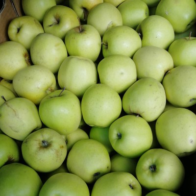 Jabolka sorte Zlati delišes, preverjeno EKOloško pridelana. Preverja SI-EKO-004. Kmetijstvo EU (Italija).